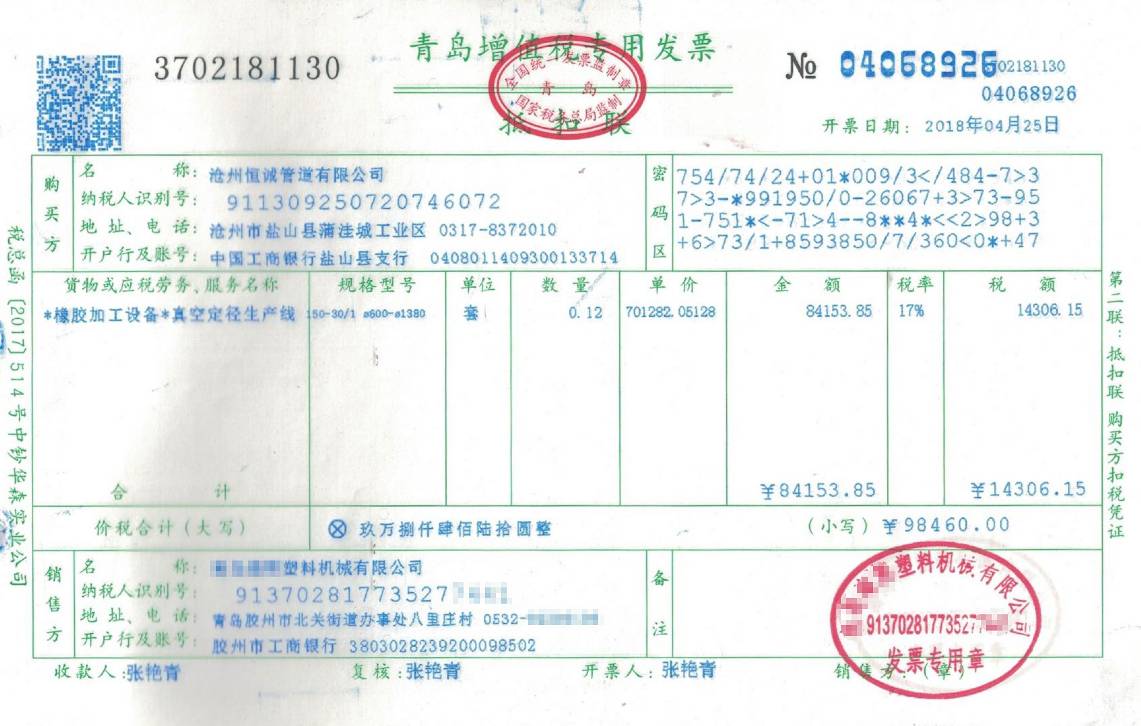 保溫皮套管擠出機(jī)設(shè)備發(fā)票
