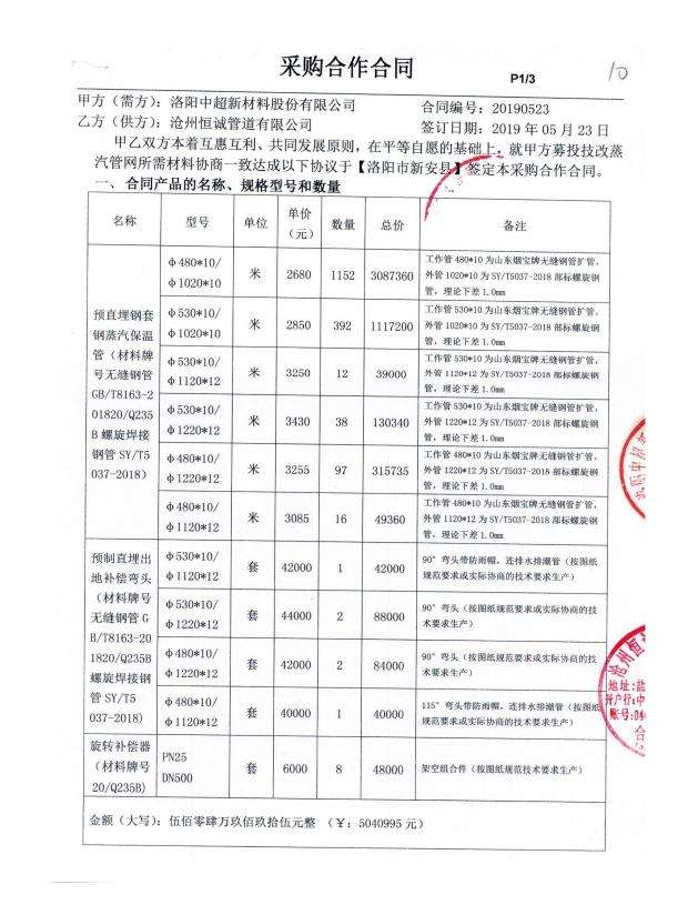 洛陽(yáng)中超新材料股份有限公司與我公司達(dá)成鋼套鋼保溫鋼管合作協(xié)議,我們以最優(yōu)質(zhì)的產(chǎn)品質(zhì)量,回饋客戶對(duì)我們的信賴,恒誠(chéng)管道將一如既往專注保溫管道的生產(chǎn)與研發(fā)回饋廣大客戶。