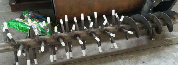 3.加大出料口或加長(cháng)料槽端部,以解決排料不暢或來(lái)不及排料的問(wèn)題。同時(shí),還可在出料口料槽端部安裝一小段反旋向葉片,以防端部堵料。